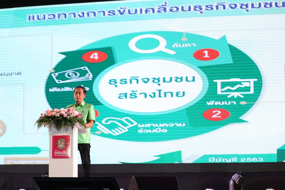 ทั้งนี้ ธ.ก.ส. ได้นำนโยบายมาจัดทำเป็นโครงการธุรกิจชุมชนสร้างไทย โดยสนับสนุนการดำเนินกิจกรรมทางเศรษฐกิจของคนในชุมชน ประกอบด้วย กิจกรรมการผลิต กิจกรรมขายผลผลิต กิจกรรมการซื้อและบริโภคของคนในชุมชนอย่างมีส่วนร่วม สอดคล้องกับวิถีชีวิตของคนในชุมชน โดยใช้ทรัพยากรของชุมชน มีการแบ่งปันผลประโยชน์อย่างเกื้อกูลและเป็นธรรม โดยมีแนวทางในการขับเคลื่อนที่เริ่มจากการค้นหาและศึกษาความต้องการของชุมชน ทั้งโอกาส ศักยภาพ ปัญหา แนวทางพัฒนาและแก้ไข เหมือนการระเบิดจากภายใน
