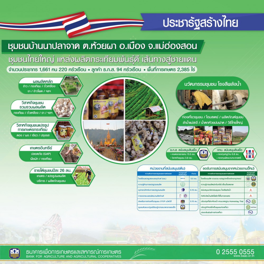 ธ.ก.ส. ร่วมงานโครงการประชารัฐสร้างไทย พัฒนาล้านนา พื้นที่ 8 จังหวัดภาคเหนือตอนบนแบบบูรณาการความร่วมมือของหน่วยงานต่างๆ ประกาศพร้อมเดินหน้าขับเคลื่อนธุรกิจชุมชน ตามนโยบายขับเคลื่อนการพัฒนาเศรษฐกิจฐานรากอย่างยั่งยืน ตั้งเป้าพัฒนา 928 ชุมชนภายในสิ้นปีนี้