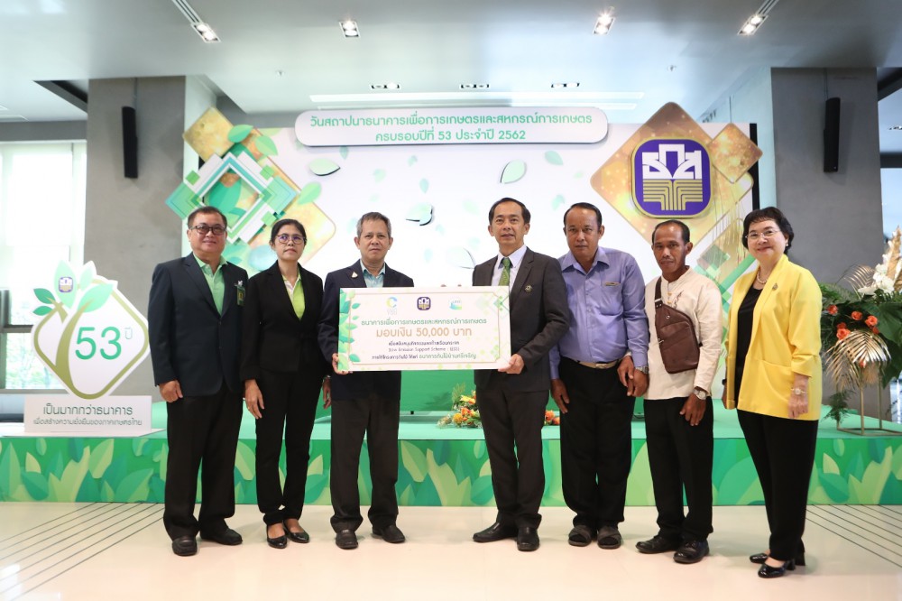 นายอภิรมย์ สุขประเสริฐ ผู้จัดการธนาคารเพื่อการเกษตรและสหกรณ์การเกษตร (ธ.ก.ส.) กล่าวว่า ในโอกาสครบรอบปีที่ 53 ธ.ก.ส. มุ่งสานต่อนโยบาย Go Green ซึ่งได้เริ่มดำเนินการมาตั้งแต่ต้นปีบัญชี 2562 โดยส่งเสริมการผลิตอาหารปลอดภัยและการทำเกษตรอินทรีย์ตั้งแต่การปลูกสู่การแปรรูป และการจำหน่าย การเพิ่มช่องทางการตลาดรวมทั้งผลักดันให้สินค้าเกษตรได้รับมาตรฐานรับรอง เพื่อสร้างความมั่นใจให้ผู้บริโภค โดยปัจจุบันมีเกษตรกรที่ทำการผลิตเกษตรปลอดภัย (GAP) จำนวน 774 ราย พื้นที่ 3,649 ไร่ เกษตรอินทรีย์ที่ได้รับการรับรองการผลิตแบบมีส่วนร่วม (PGS) จำนวน 2,569 ราย พื้นที่ 12,804 ไร่ และเกษตรอินทรีย์ที่ได้รับมาตรฐาน Organic Thailand หรือ IFOAM และมาตรฐานอื่น ๆ จำนวน 1,494 ราย พื้นที่ 5,736 ไร่ รวมการทำเกษตรอินทรีย์และเกษตรปลอดภัยทั้งสิ้น จำนวน 4,837 ราย พื้นที่ 22,189 ไร่