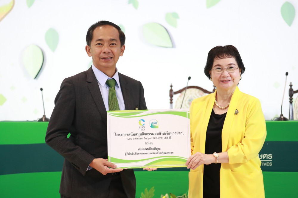 นายอภิรมย์ กล่าวอีกว่าด้านการดูแลสิ่งแวดล้อม ธ.ก.ส. ได้ดำเนินการยกระดับธนาคารต้นไม้ จำนวน 6,836 ชุมชน สู่ชุมชนไม้มีค่าเพื่อเพิ่มพื้นที่ป่าแล้วกว่า 1,974 ชุมชน และร่วมโครงการสนับสนุนกิจกรรมลดก๊าซเรือนกระจก (Low Emission Support Scheme) หรือ LESS โดยปัจจุบันมีชุมชมเข้าร่วมแล้ว 4 แห่ง ได้แก่ บ้านท่าลี่ จังหวัดขอนแก่น บ้านถ้ำเสือ จังหวัดเพชรบุรี บ้านนาซำจวง จังหวัดหนองบัวลำภู และบ้านศรีเจริญ จังหวัดพิษณุโลก คิดเป็นจำนวนที่กักเก็บก๊าซเรือนกระจกได้กว่า 150,000 ตันคาร์บอนไดออกไซด์เทียบเท่า