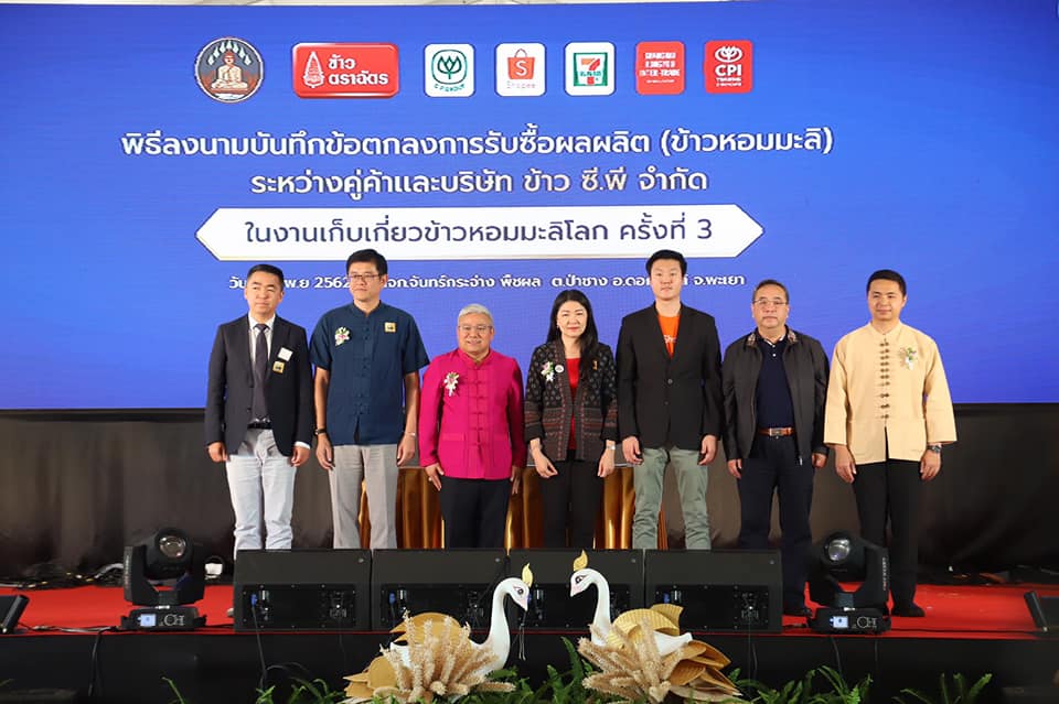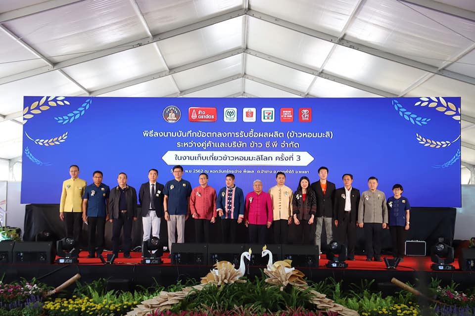 เมื่อวันที่ 15 พฤศจิกายน 2562 บริษัท ข้าว ซี.พี.จำกัด ผู้ผลิตและจำหน่าย ข้าวตราฉัตร จับมือกระทรวงเกษตรและสหกรณ์ จังหวัดพะเยา และเกษตรกรสมาชิกผู้ปลูกข้าวหอมมะลิ อ.ดอกคำใต้ จ.พะเยา จัดงานวันเก็บเกี่ยวข้าวหอมมะลิโลก ครั้งที่ 3 (3rd World’s Hom Mali Rice Harvesting Day) ขึ้น ภายใต้โครงการพัฒนาวัตถุดิบต้นน้ำ ของ บริษัท ข้าว ซี.พี.จำกัด โดยมีร้อยเอก ธรรมนัส พรหมเผ่า รัฐมนตรีช่วยว่าการกระทรวงเกษตรและสหกรณ์เป็นเปิดงาน