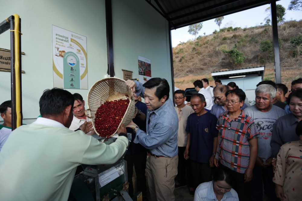 ในโอกาสนี้นี้ นายศุภชัย ได้เยี่ยมชมแปลงกาแฟของเกษตรกร พร้อมพูดคุยสอบถามถึงวิถีชีวิตที่เปลี่ยนแปลงไปจากการเปลี่ยนมาปลูกกาแฟทดแทนข้าวโพดฯ และยังได้ทำการเปิดโรงแปรรูปกาแฟที่เพิ่งสร้างเสร็จและบริหารจัดการในรูปของวิสาหกิจชุมชน ซึ่งเพิ่งเริ่มกระบวนการเปิดรับซื้อกาแฟรุ่นแรกจากชาวชุมชน พร้อมชมการสาธิตการแปรรูปกาแฟ และได้พูดคุยกับชาวชุมชนที่เป็นสมาชิกวิสาหกิจชุมชนอย่างเป็นกันเอง