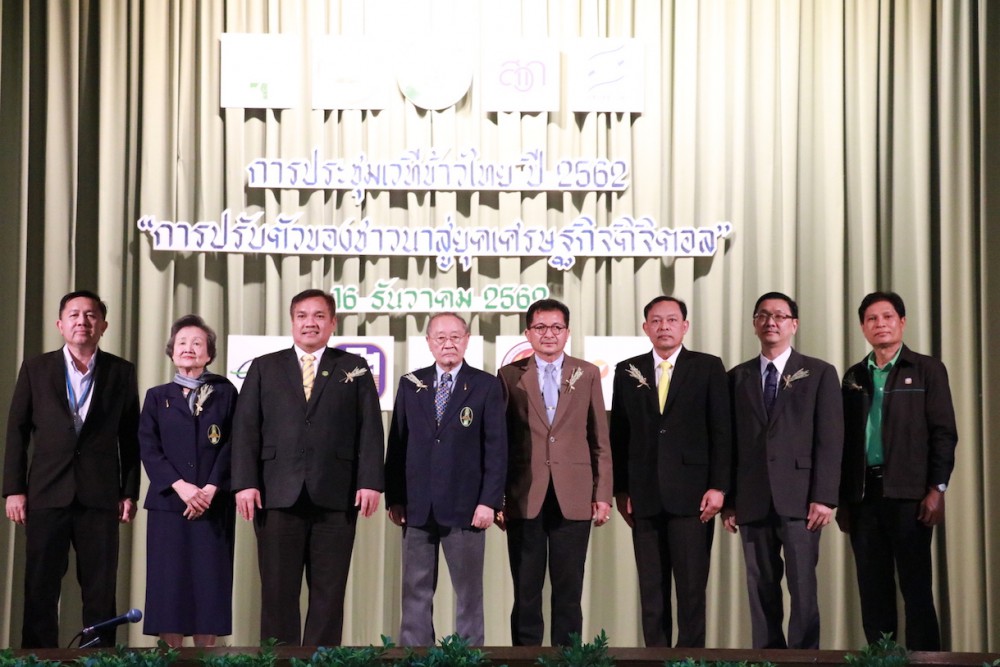 สำนักงานคณะกรรมการส่งเสริมวิทยาศาสตร์ วิจัยและนวัตกรรม (สกสว.) ร่วมกับมูลนิธิข้าวไทย ในพระบรมราชูปถัมภ์ และภาคีองค์กรพันธมิตร จัดการประชุมเวทีข้าวไทย ปี 2562 เรื่อง “การปรับตัวของชาวนาไทยสู่ยุคเศรษฐกิจดิจิทัล” ณ ห้องประชุมสุธรรมอารีกุล อาคารสารสนเทศ 50 ปี มหาวิทยาลัยเกษตรศาสตร์ บางเขน กรุงเทพฯเมื่อวันที่ 16 ธันวาคม 2562 โดยมี ดร.สุเมธ ตันติเวชกุล ประธานมูลนิธิข้าวไทยฯ กล่าวเปิดงาน ซึ่งการจัดประชุมในครั้งนี้มีวัตถุประสงค์เพื่อแลกเปลี่ยนเรียนรู้และแสวงหาความร่วมมือในการกำหนดทิศทาง รวมทั้งสร้างยุทธศาสตร์เศรษฐกิจข้าวและชาวนาไทยภายใต้ฐานเศรษฐกิจดิจิทัล