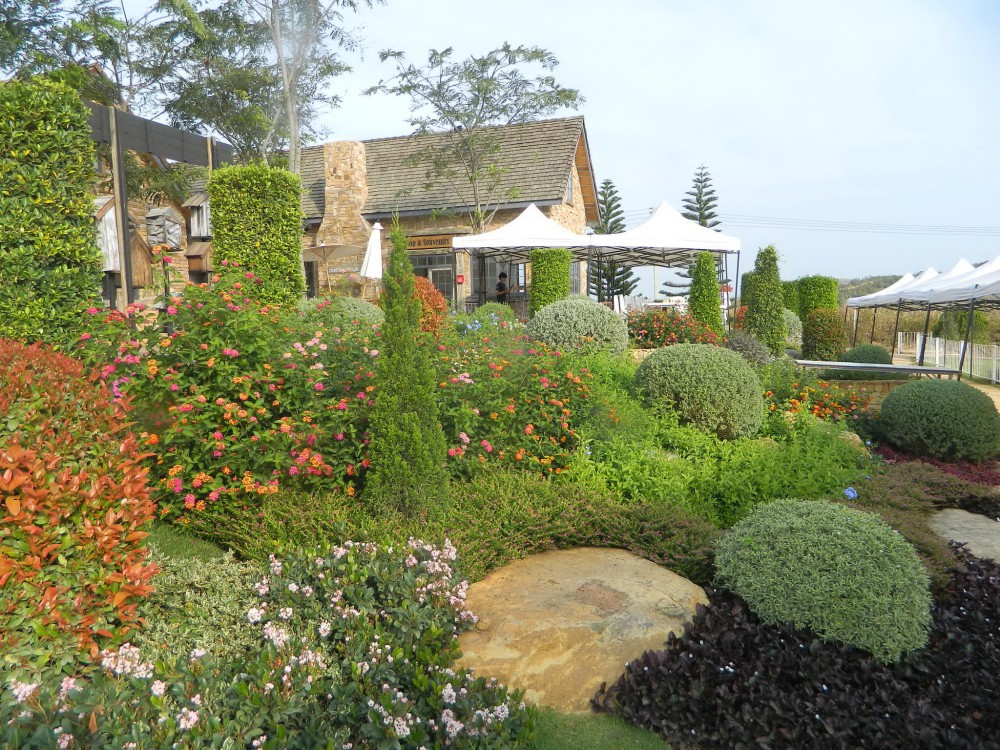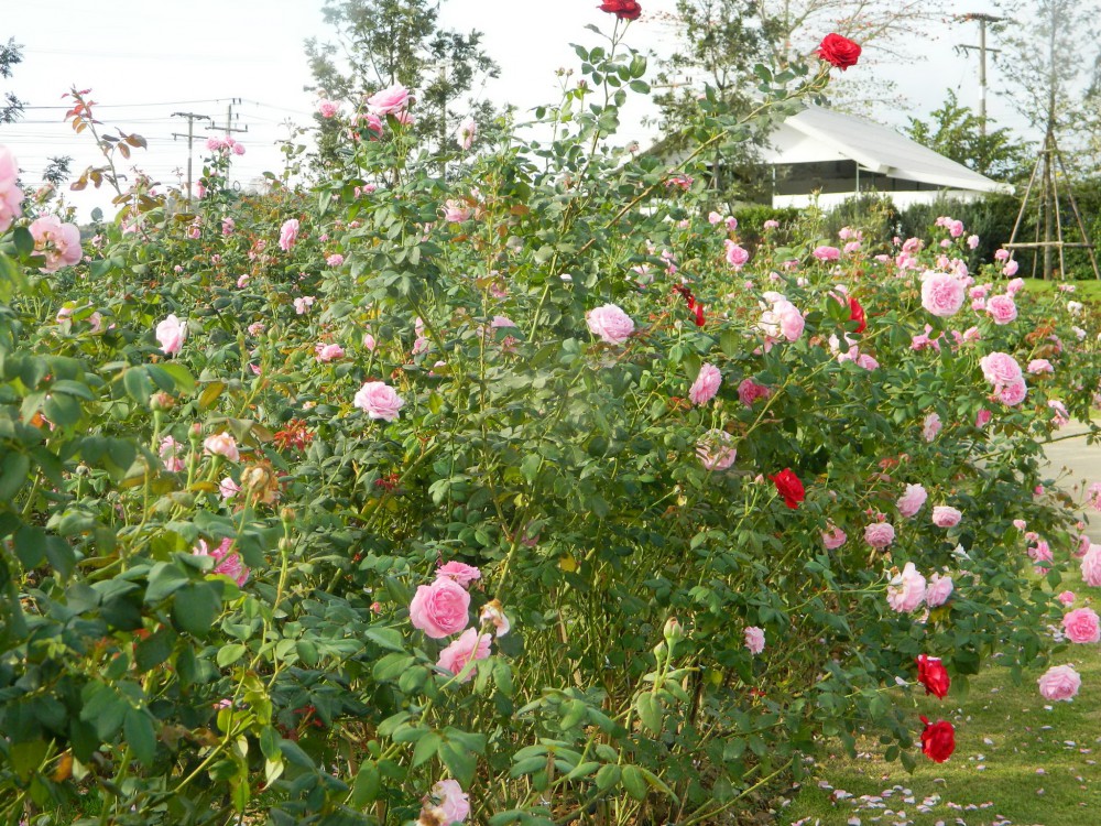 กุหลาบหลากสี ไม่เพียงแต่สวยงามตะการตา หากแต่ยังส่งกลิ่นหอมโชยอบอวลมากับสายลมแตะจมูกตลอดเวลา หากเราทอดสายตามองไปยังเบื้องหน้า จะแลเห็นภาพทิวทัศน์สวยงาม ที่อยู่ในอ้อมโอบของขุนเขาที่ตระหง่านแทบรอบด้าน