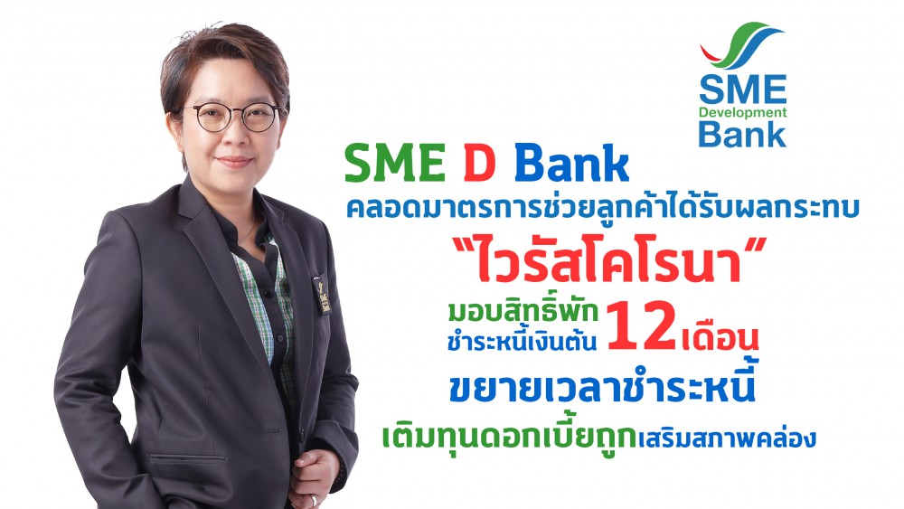 SME D Bank ออกมาตรการช่วยเหลือลูกค้าได้รับผลกระทบทั้งทางตรงและทางอ้อมจากไวรัสโคโรนา มอบสิทธิ์พักชำระหนี้เงินต้นนาน 12 เดือน ขยายเวลาชำระหนี้ให้สอดคล้องกับธุรกิจ ตลอดจนขยายระยะเวลาค้ำประกัน บสย. ได้อีก 5 ปี โดยไม่ต้องเสียค่าธรรมเนียม พร้อมเติมทุนสินเชื่อดอกเบี้ยพิเศษ เริ่มต้น 3% ต่อปี เพื่อเป็นทุนหมุนเวียนเสริมสภาพคล่อง