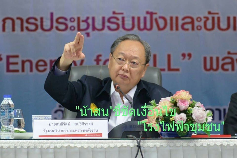 “สนธิรัตน์” ชี้ชัดหลักเกณฑ์และเงื่อนไขในการพิจารณาข้อเสนอโครงการโรงไฟฟ้าชุมชน 700 เมกะวัตต์ คนในชุมชนต้องได้ประโยชน์ สามารถมีชีวิตที่ดีขึ้นเป็นตัวตั้ง ระบุการเขียนโครงการที่จะเสนอต้องระบุด้วยว่า พืชพลังงานที่จะมาป้อนโรงไฟฟ้าจะสามารถสร้างรายได้ให้เกษตรกรต่อไร่ต่อปีเท่าไร และต้องให้ดีกว่าของเดิมที่ปลูกอยู่แล้ว ย้ำในแต่ละพื้นที่ไม่จำเป็นต้องหญ้าเนเปียร์เป็นวัตถุดิบเหมือนกันหมด ต้องขึ้นอยู่กับปัจจัยตัวแปรแต่ละท้องถิ่น ที่สำคัญจะต้องคืนส่วนแบ่งรายได้ให้ชุมชน 25 สตางค์ต่อหน่วย และให้เขียนโครงการด้วยว่า จะนำเงินเหล่านี้ไปต่อยอดทำอะไรบ้าง