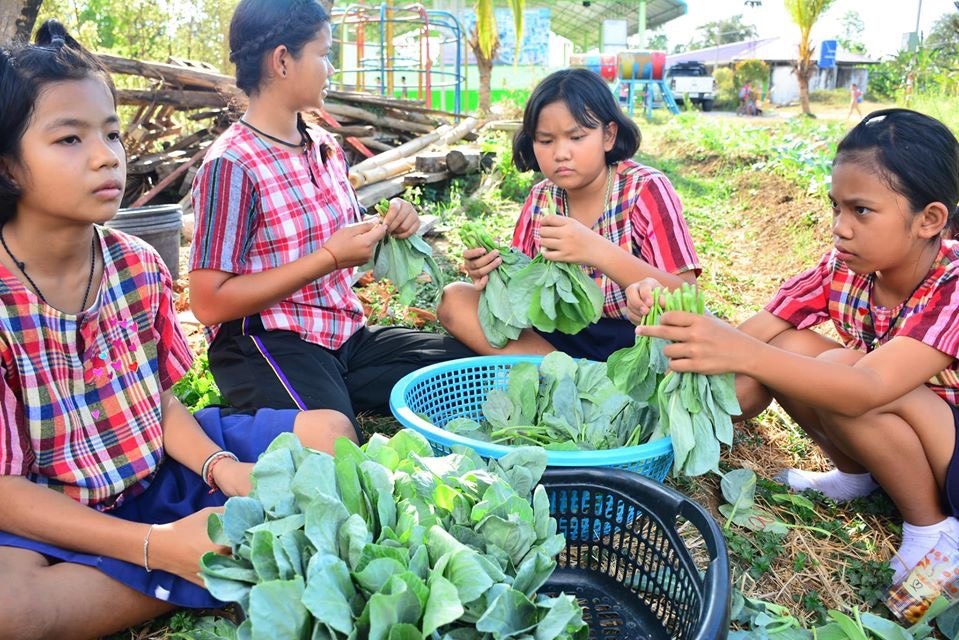 เช่นเดียวกับ ด.ช.จิรวัฒน์ จิตรสมัคร หรือน้องอุ้ม อายุ 13 ปี นักเรียนชั้นประถมศึกษาปีที่ 6 เด็กนักเรียนชาวไทย เล่าว่า ทำหน้าที่เก็บมูลไก่ในโรงเรือนเพื่อนำมาเป็นปุ๋ยใส่แปลงผักของโรงเรียน ทุก 2 สัปดาห์น้องอุ้มจะเก็บมูลไก่ในโรงเรือนเลี้ยงไก่ จากนั้นนำมูลไก่มาตากแห้งไว้ประมาณ 3 วัน หรือตากไว้ 3 แดด แล้วจึงนำมูลไก่ที่ตากแห้งแล้วมาผสมแกลบเพื่อเป็นปุ๋ยใส่ต้นไม้และแปลงผักของโรงเรียน หากทำปุ๋ยได้ในปริมาณมาก ก็จะช่วยกันนำมาบรรจุใส่กระสอบๆละ 3 กิโลกรัม ขายราคากระสอบละ 50 บาท ช่วยให้มีรายได้เข้ากองทุนฯของโรงเรียนอีกทางหนึ่ง