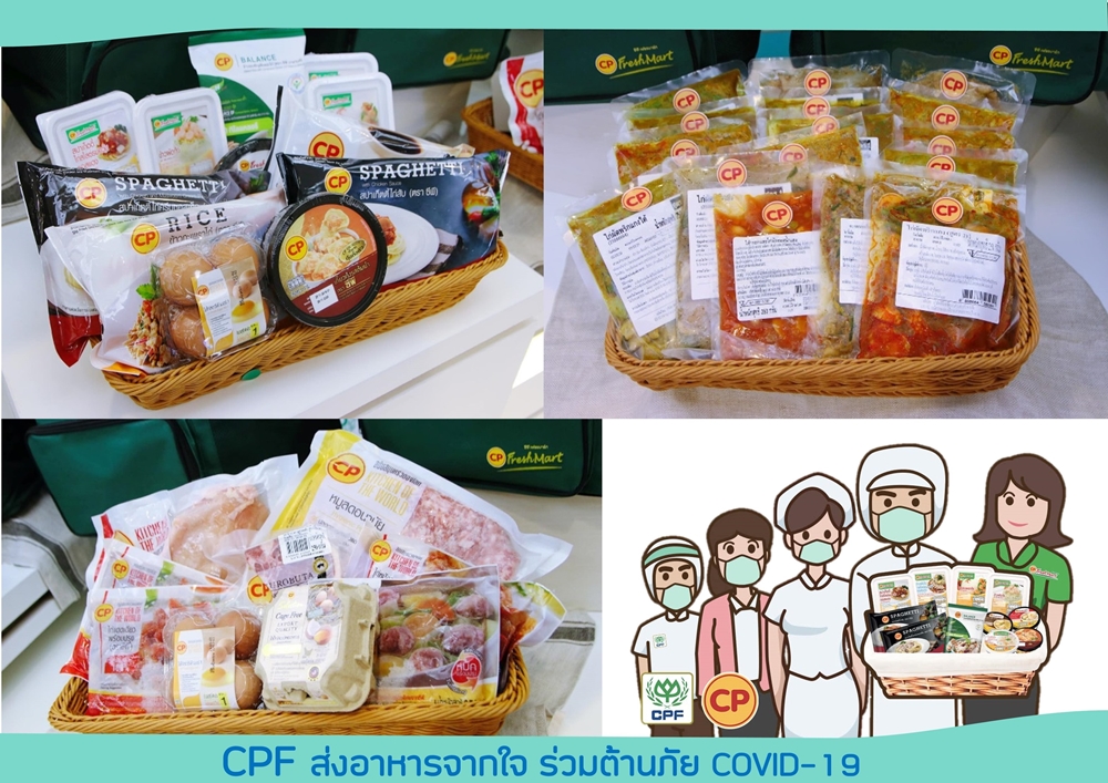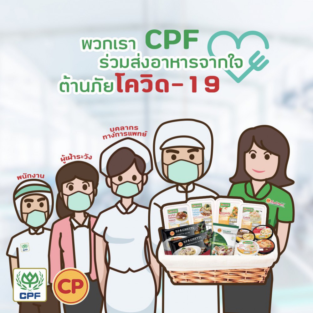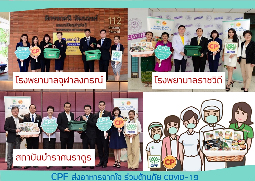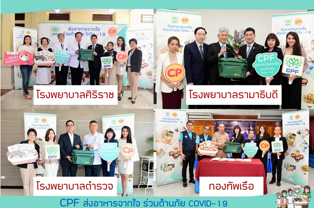 บริษัท เจริญโภคภัณฑ์อาหาร จำกัด (มหาชน) หรือซีพีเอฟ ได้ร่วมกับโรงพยาบาลของรัฐที่มีผู้ป่วยติดเชื้อโควิด-19 ดำเนิน “โครงการ CPF ส่งอาหารจากใจร่วมต้านภัย COVID-19” ขึ้น เพื่อสนับสนุนอาหารคุณภาพปลอดภัยให้คณะแพทย์และเจ้าหน้าที่ทางการแพทย์ เพื่อเป็นกำลังใจแก่ผู้ที่เสียสละเป็นทัพหน้าในการปฏิบัติภารกิจในการดูแลรักษาผู้ป่วยอย่างทุ่มเทมาตลอดระยะเวลาเวลาเกือบ 2 เดือน และสนับสนุนอาหารแก่ประชาชนที่อยู่ในเกณฑ์ต้องเฝ้าระวังได้มีอาหารบริโภคอย่างเพียงพอในช่วงที่ต้องกักตัว