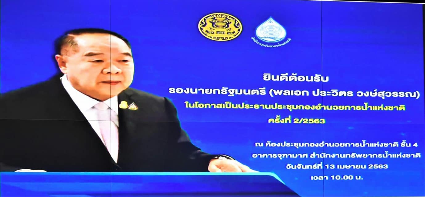 วันที่13 เมษายน 2563 พลเอกประวิตร วงษ์สุวรรณ รองนายกรัฐมนตรี ในฐานะผู้อำนวยการกองอำนวยการน้ำแห่งชาติ (กอนช.) เป็นประธานการประชุมกองอำนวยการน้ำแห่งชาติผ่านระบบวิดีโอคอนเฟอร์เรนซ์ ร่วมกับหน่วยงานที่เกี่ยวข้อง อาทิ กรมป้องกันและบรรเทาสาธารณภัย กรมอุตุนิยมวิทยา กรมชลประทาน กรมทรัพยากรน้ำ กองทัพบก หน่วยบัญชาการทหารพัฒนา กรมทรัพยากรน้ำ การประปาภูมิภาค การประปานครหลวง การไฟฟ้าฝ่ายผลิตแห่งประเทศไทย เป็นต้น
