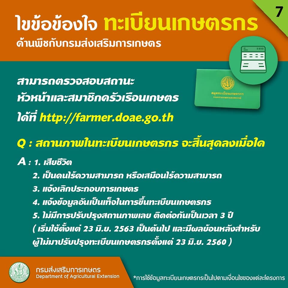 Q : สถานภาพในทะเบียนเกษตรกร จะสิ้นสุดลงเมื่อใด
