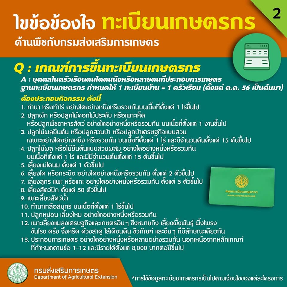 Q : เกณฑ์การขึ้นทะเบียนเกษตรกร