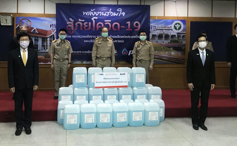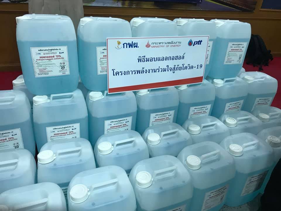 “เรื่องนี้ผมและหน่วยงานในกระทรวงพลังงานมีความมุ่งมั่นอย่างมาก เพราะในสถานการณ์ขณะนี้ทุกฝ่ายต้องร่วมมือร่วมใจกัน ใครทำอะไรได้ต้องรีบทำ เพราะความเดือดร้อนของพี่น้องประชาชนเขารอไม่ได้ กระทรวงพลังงาน โดย กฟผ. และ ปตท.จะเร่งกระจายแอลกอฮฮล์นี้ผ่าน รพ.สต. ทั่วประเทศกว่า 9,800 แห่งทั่วประเทศ ให้ถึงมือประชาชนให้เร็วที่สุดตามเป้าหมายจำนวน 2.4 ล้านลิตร โดยจะจัดส่งให้รพ.สต. แต่ละแห่งทุก 6 วันๆ ละ 20 ลิตร ต่อเนื่องเป็นระยะเวลา 30 วัน โดย กฟผ. และปตท. ได้แบ่งพื้นที่รับผิดชอบกันแล้วหน่วยงานละประมาณ 4,900 แห่ง เพื่อกระจายให้ประชาชนใช้ทำความสะอาดมือและสิ่งของต่างๆ ป้องกันการระบาดของเชื้อโควิด-19 ซึ่งผมเองก็ได้ติดตามตัวเลขผู้ติดเชื้อที่มีแนวโน้มดีขึ้น แต่เราต้องการ์ดไม่ตกครับ ประเทศไทยจะได้ผ่านวิกฤตินี้ไปได้ด้วยความร่วมมือกันครับ” รมว.พลังงาน กล่าว