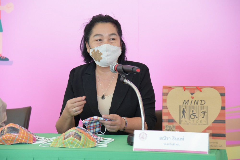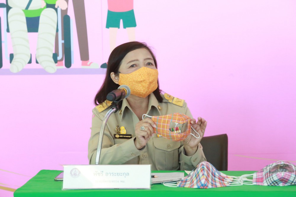นางพัชรี กล่าวว่า ปัจจุบันสถานการณ์การแพร่ระบาดของโรคติดเชื้อไวรัสโคโรนา 2019 หรือ โรคโควิด-19 ส่งผลกระทบต่อประชาชนในวงกว้างอย่างต่อเนื่อง โดยกลุ่มคนพิการเป็นกลุ่มที่มีความเปราะบางและมีความเสี่ยงสูง เนื่องจากไม่สามารถเข้าถึงวิธีการป้องกันตนเองและการดูแลสุขอนามัยที่ดีได้อย่างทั่วถึง ทั้งนี้ กระทรวงการพัฒนาสังคมและความมั่นคงของมนุษย์ (พม.) โดยกรมส่งเสริมและพัฒนาคุณภาพชีวิตคนพิการ (พก.) ได้มีมาตรการดูแลคนพิการอย่างต่อเนื่อง โดยมีการจัดสอนการเย็บหน้ากากผ้าเพื่อป้องกันการแพร่ระบาดของโรคโควิด-19 ของศูนย์ส่งเสริมและพัฒนาอาชีพคนพิการ (โรงงานปีคนพิการสากล) ซึ่งเป็นหน่วยงานในสังกัด พก. เพื่อฝึกสอนประชาชนและจิตอาสา รวมทั้งผลิตหน้ากากผ้าโดยคนพิการ และจำหน่ายในราคาย่อมเยาว์ มีเอกลักษณ์เป็นลายผ้าขาวม้า ด้วยลวดลายสวยงามตามธรรมชาติ สามารถใส่ได้ 2 ด้าน ซักรีดได้ แล้วนำกลับมาใช้ใหม่