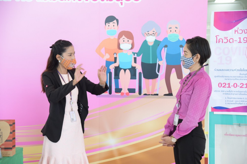 รองอธิบดีกรมส่งเสริมและพัฒนาคุณภาพชีวิตคนพิการ กล่าวอีกว่า สำหรับวันนี้ มีการสาธิตการใช้หน้ากากผ้าแบบใสโดยคนพิการทางการได้ยินพร้อมล่ามภาษามือ โดยจะมีการสอนทำหน้ากากดังกล่าวฟรีทางสื่อโซเชียลมีเดียในเร็วๆ นี้ และกระทรวง พม. โดย พก. ยินดีเป็นสื่อกลาง สำหรับประชาชนที่สนใจบริจาคอุปกรณ์ทำหน้ากาก สามารถบริจาคได้ที่ อาคาร 60 ปี กรมส่งเสริมและพัฒนาคุณภาพชีวิตคนพิการ บ้านราชวิถี กรุงเทพฯ ซึ่งอุปกรณ์ที่ประชาชนนำมาบริจาค เจ้าหน้าที่จะนำไปผลิตหน้ากากแบบดังกล่าว เพื่อนำไปส่งมอบให้กับล่ามและคนพิการทางการได้ยินที่มีความจำเป็นต้องใช้ในสื่อสาร