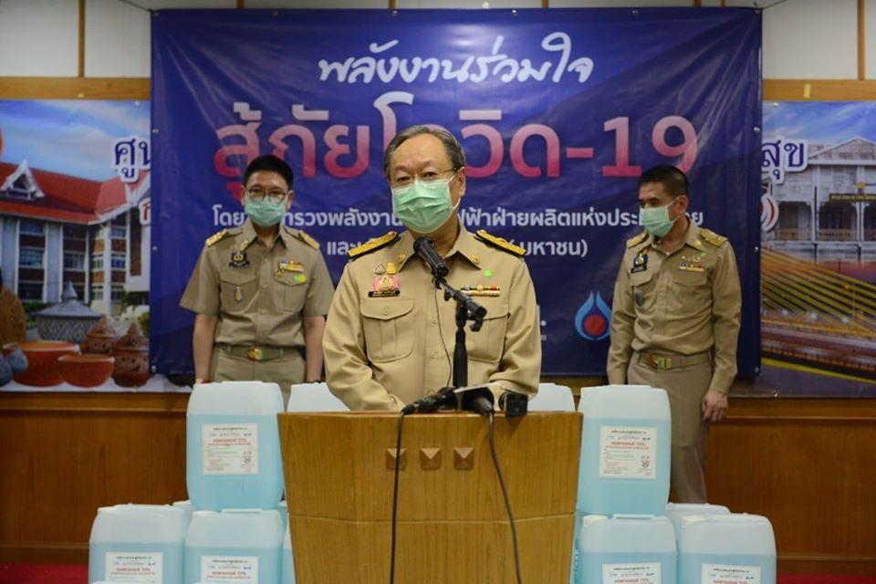 วันที่ 29 เมษายน 2563 นายสนธิรัตน์ สนธิจิรวงศ์ รัฐมนตรีว่าการกระทรวงพลังงาน เปิดเผยว่า ตามที่กระทรวงพลังงานร่วมกับ การไฟฟ้าฝ่ายผลิตแห่งประเทศไทย (กฟผ.) บริษัท ปตท. จำกัด (มหาชน)และบริษัทในเครือ ได้ดำเนินโครงการ “พลังงานร่วมใจสู้ภัยโควิด-19” โดยมีการจัดหาแอลกอฮอล์เพื่อประชาชน ด้วยการส่งมอบให้หน่วยงานสาธารณสุขจังหวัด เพื่อกระจายให้โรงพยาบาลส่งเสริมสุขภาพตำบล (รพ.สต.)ใช้กับบุคลากรทางการแพทย์ ประชาชนในชุมชน กลุ่มผู้สูงอายุ หรือกลุ่มผู้มีโรคประจำตัว ให้สามารถเข้าถึงแอลกอฮอล์เพื่อให้ทำความสะอาดมือและอุปกรณ์ต่างๆอย่างทั่วถึง มีเป้าหมายการส่งมอบแอลกอฮอล์ 70% ให้กระจายไปยัง รพ.สต.ทั่วประเทศจำนวน 9,863 แห่งภายใน 30 วันนั้น