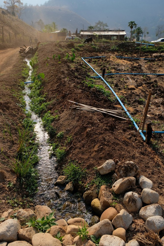 ด่านแรกของการเริ่มต้นคือ จัดสรรผืนดินแห้งแล้งให้มีแหล่งน้ำเพียงพอสำหรับทำเกษตรทฤษฎีใหม่ โดยมีพี่เลี้ยงที่ช่วยแนะนำความรู้เพื่อพลิกฟื้นผืนดินเสื่อมโทรม จากศูนย์ศึกษาการพัฒนาห้วยฮ่องไคร้ อันเนื่องมาจากพระราชดำริ มูลนิธิอุทกพัฒน์ ในพระบรมราชูปถัมภ์ สถาบันสารสนเทศทรัพยากรน้ำ (องค์การมหาชน) หรือ สสน. รวมทั้งเครือข่ายแม่ละอุป และมูลนิธิรักษ์ไทย ด้วยการนำแนวทางการบริหารจัดการน้ำมาใช้ในพื้นที่และปรับเปลี่ยนวิถีการทำเกษตรไปเป็นรูปแบบของวนเกษตร