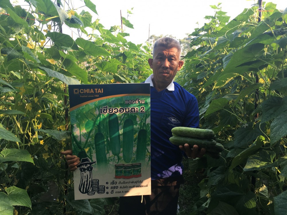 คุณยาน แย้มเกสร อดีตช่างก่อสร้างผู้ผันตัวมาเป็นเกษตรกรปลูกแตงกวากล่าวว่า “เมล็ดพันธุ์แตงกวาเขียวมาลัย 2 ของเจียไต๋ มีขนาดเมล็ดใหญ่ ไม่ลีบ และความงอกสม่ำเสมอ สภาพต้นมีความแข็งแรง ทนโรคและแมลง ทำให้ประหยัดลดต้นทุนการดูแลรักษา อีกทั้งยังเก็บเกี่ยวได้นาน มีการเกาะค้างแตกแขนงดี ผลิตผลมีผิวสีเขียวเข้ม ดูสดใหม่อยู่เสมอ จึงไม่ต้องกังวลว่าจะเปลี่ยนเป็นสีเหลืองไวถ้าต้องขนส่งไปตลาดที่อยู่ห่างไกล ส่วนขนาดของผลก็เป็นที่ต้องการของตลาด บางช่วงสามารถขายได้ราคาดีถึง 10-12 บาทต่อกิโลกรัม สำหรับเคล็ดลับในการปลูกจะเพิ่มธาตุอาหาร ให้ปุ๋ยตามช่วงเวลา ซึ่งเจียไต๋เองได้เข้ามาช่วยแนะนำเทคนิคการเพาะปลูกที่เหมาะสมที่เอามาประยุกต์กับแปลงเราได้ดี”