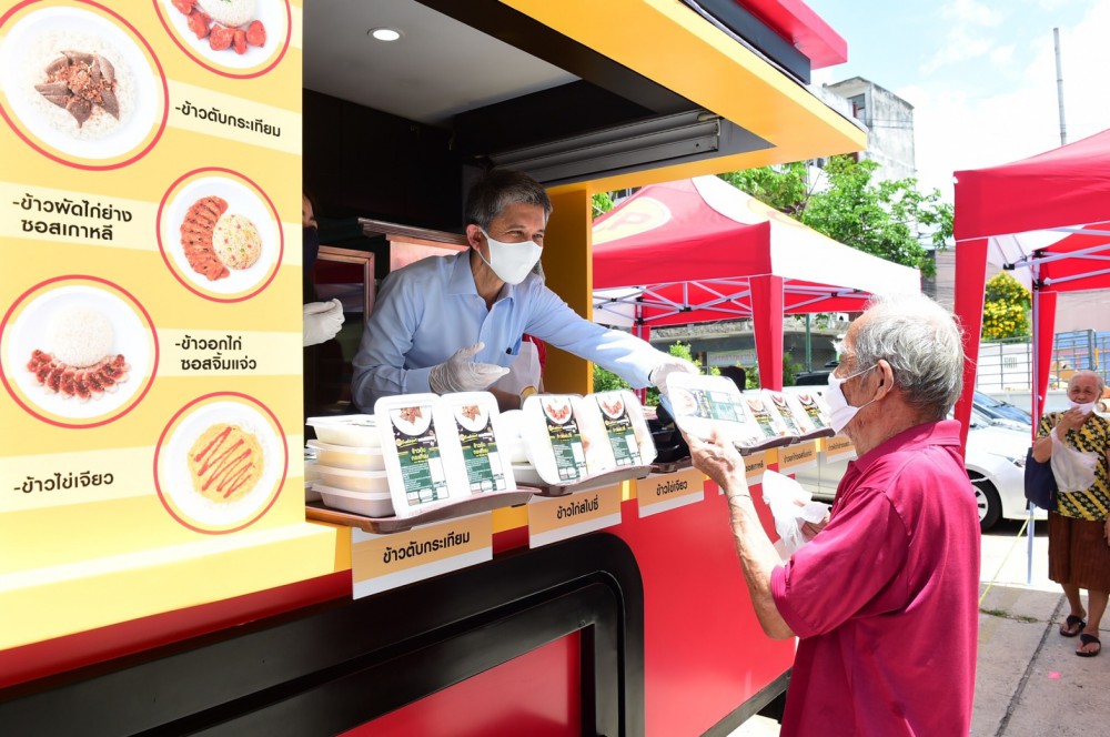 บริษัท เจริญโภคภัณฑ์อาหาร จำกัด (มหาชน) หรือ ซีพีเอฟ ร่วมกับ กระทรวงเกษตรและสหกรณ์ จัดกิจกรรม Food Truck โครงการ “อาหารปลอดภัย จากใจ…สู่ชุมชน” ครั้งที่ 5 เพื่อช่วยบรรเทาความเดือดร้อนด้านอาหารให้ชุมชนที่ได้รับผลกระทบจากโควิด-19 โดยมี พรรณินี นันทพานิช รองกรรมการผู้จัดการอาวุโส ด้านสื่อสารองค์กรและประชาสัมพันธ์ เป็นตัวแทนบริษัทฯ ร่วมกับ ชนินทร์ รุ่งแสง คณะที่ปรึกษารัฐมนตรีกระทรวงเกษตรและสหกรณ์ และพนักงานจิตอาสาซีพีเอฟ ช่วยกันส่งมอบอาหารอุ่นร้อนพร้อมทาน จากรถ Food Truck ของ CP Freshmart ให้แก่ชาวชุมชนรอบวัดรวกสุทธาราม ตลาดนครหลวง และวัดบางบำหรุ เขตบางกอกน้อย