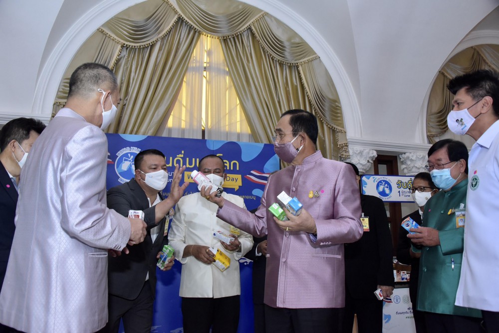 วันที่ 26 พฤษภาคม 2563 พลเอก ประยุทธ์ จันทร์โอชา นายกรัฐมนตรีและรัฐมนตรีว่าการกระทรวงกลาโหม เยี่ยมชมบูธนิทรรศการ “วันดื่มนมโลก (World Milk Day) ประจำปี 2563″ ที่จะขึ้นในวันที่ 1 มิถุนายน 2563 โดยมีนายเฉลิมชัย ศรีอ่อน รัฐมนตรีว่าการกระทรวงเกษตรและสหกรณ์ พร้อมรัฐมนตรีช่วยว่าการกระทรวงเกษตรทั้ง 3 ท่าน ร้อยเอก ธรรมนัส พรหมเผ่า นางสาวมนัญญา ไทยเศรษฐ์ และนายประภัตร โพธสุธน ให้การต้อนรับ ณ ตึกสันติไมตรีหลังนอก ทำเนียบรัฐบาล