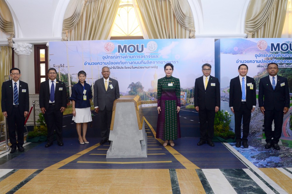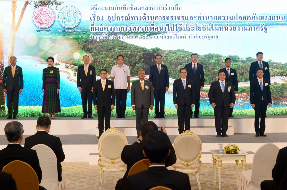 วันที่ 12 มิถุนายน 2563 พลเอกประยุทธ์ จันทร์โอชา นายกรัฐมนตรี เป็นประธานในพิธรีลงนามบันทึกข้อตกลงความร่วมมือ เรื่อง อุปกรณ์ทางด้านการจราจรและอำนวยความปลอดภัยทางถนนที่ผลิตจากยางพารา เพื่อนำไปใช้ประโยชน์ในหน่วยงานภาครัฐ ระหว่างกระทรวงคมนาคมและกระทรวงเกษตรและสหกรณ์ โดยมีนายเฉลิมชัย ศรีอ่อน รัฐมนตรีว่าการกระทรวงเกษตรและสหกรณ์ เป็นผู้ลงนามในนามกระทรวงเกษตรฯ ณ ตึกสันติไมตรี (หลังใน) ทำเนียบรัฐบาล