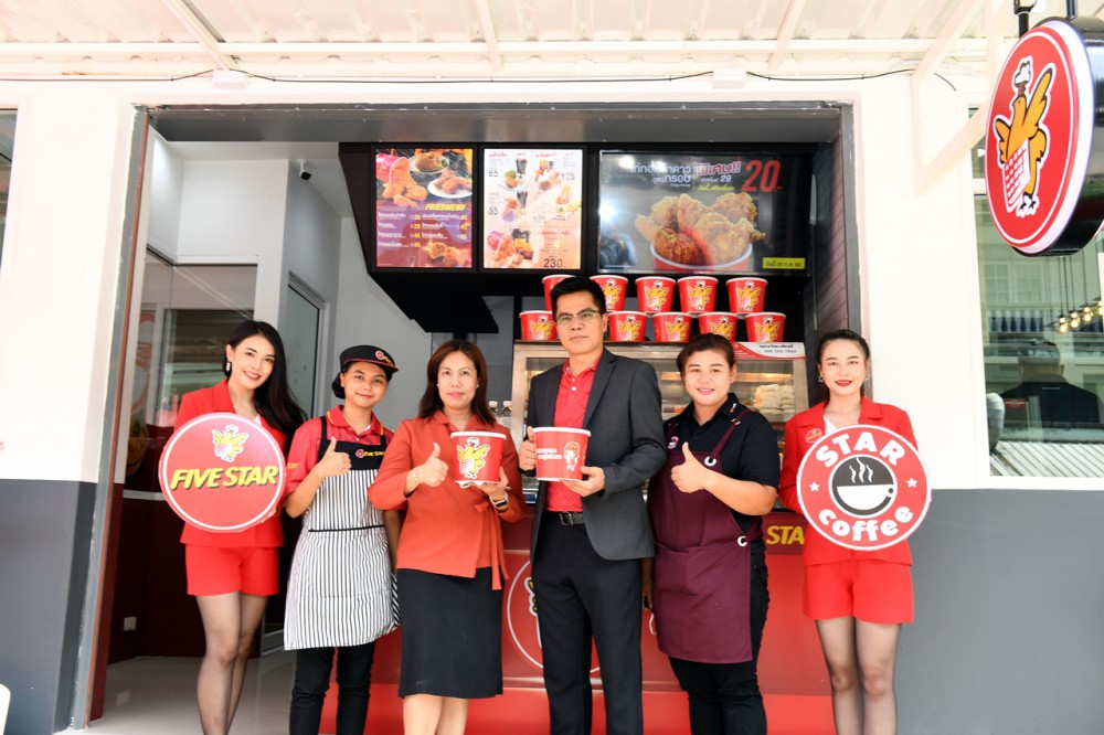 FIVE STAR และ Star coffee ฉลองเปิดสาขาใหม่ รพ.กระทุ่มแบน ทำเลใหม่ที่ธุรกิจห้าดาวที่ร่วมสร้างอาชีพ-สร้างรายได้ ให้กับผู้ประกอบรุ่นใหม่ เป็นสาขาที่ 320 มีการตกแต่งแบบทันสมัย พร้อมโปรโมชั่นของร้าน FIVE STAR ที่หลายรายการ อย่างไก่กรอบ ชิ้นละ 20 บาท อกไก่อบชานอ้อย ชิ้นละ 45 บาท ไก่ทอดเกลือ ครึ่งตัว 55 บาท และเป็ดทอดเยอรมัน ครึ่งตัว 99 บาท