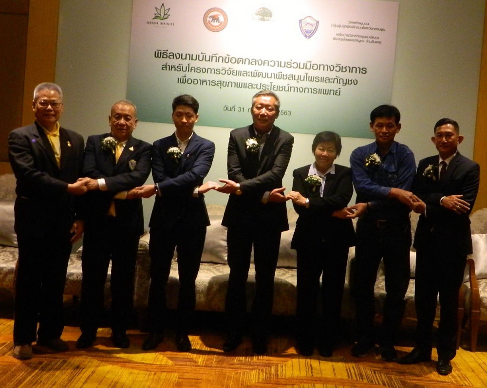 วันที่ 31 กรกฎาคม 2563 ได้มีพิธีการลงนามบันทึกข้อตกลงความมือ(เอ็มโอยู)ทางวิชาการว่าด้วย “โครงการวิจัยและพัฒนาพืชสมุนไพรและกัญชงเพื่ออาหารสุขภาพและประโยชน์ทางการแพทย์”ระหว่างบริษัท กรีนอินฟินิท จำกัด กับมหาวิทยาลัยนเรศวร และกลุ่มวิสาหกิจชุมชน โดยมีตัวแทนประกอบด้วย ศ.(พิเศษ) ดร.กาญจนา เงารังษี อธิการบดีมหาวิทยาลัยนเรศวร, นายธีรยสถ์ จิตต์เสนา ประธาน บริษัท กรีนอินฟินิท จำกัด ,นายทรงภพ สืบชาติ กรรมการ บริษัท กรีนอินฟินิทจำกัด, นายเด่นชัย ลาวิชัย ประธานเครือข่ายวิสาหกิจชุมชนพัฒนาพืชสมุนไพรและกัญชงบ้านสันธาตุ ,นายจักรภฤต บรรเจิดกิจ ประธานวิสาหกิจชุมชนกลุ่มผู้ปลูกพืชผักสมุนไพรวังทรายพูน,นายเจนศิลป์ เจริญบวรศักดิ์ ประธานหอการค้าจังหวัดพิจิตร ,และนายอภิทรัพย์ เลิศสิริประภา ประธานมูลนิธิในโครงการตามพระราชดำริสวนป่าสมุนไพร ณ โรงแรม มิราเคิลแกรนด์ หลักสี