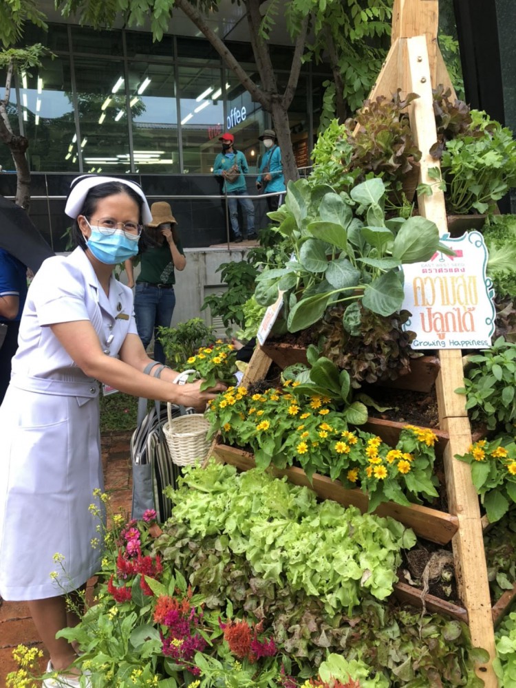 นอกจากสวนผักที่ทางเราได้เข้ามาช่วยตรงนี้ กิจกรรมต่อเนื่องที่ทางทาง อีสท์ เวสท์ ซีด จะสนับสนุนก็คือกิจกรรม Workshop สอนปลูก ในโอกาสต่างๆ โดยเจ้าหน้าที่ผู้เชี่ยวชาญด้านการปลูก จากเมล็ดพันธุ์ตราศรแดงของเรามาเป็นวิทยากรให้ ณ สวนแห่งนี้ ซึ่งผมคิดว่า ที่นี่จะกลายเป็นสวนผักคนเมืองต้นแบบ เป็นศูนย์รวมสร้างแรงบันดาลใจให้กับผู้ที่ผ่านไปผ่านมา ได้ลองลงมือปลูกผัก แลกเปลี่ยนเรียนรู้กัน แล้วกลับไปทำเองที่บ้าน หันมาใส่ใจสุขภาพ ปลูกแล้วได้ทานผักทีดี มีเหลือแบ่งปันเพื่อนบ้าน เกิดเป็นคุณภาพชีวิตและสิ่งแวดล้อมที่ดี ส่งความสุขจากผักคุณภาพดีสู่คนเมืองต่อไป