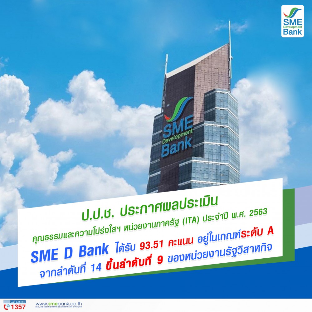 นางสาวนารถนารี รัฐปัตย์ กรรมการผู้จัดการ ธนาคารพัฒนาวิสาหกิจขนาดกลางและขนาดย่อมแห่งประเทศไทย (ธพว.) หรือ SME D Bank เปิดเผยว่า สำนักงานคณะกรรมการป้องกันและปราบปรามการทุจริตแห่งชาติ (ป.ป.ช.) ประกาศผลคะแนนการประเมินคุณธรรมและความโปร่งใสในการดำเนินงานของหน่วยงานภาครัฐ (Integrity and Transparency Assessment หรือ ITA) ประจำปีงบประมาณ พ.ศ. 2563 โดยมีหน่วยงานภาครัฐ องค์กรส่วนท้องถิ่น และองค์การมหาชน เข้าร่วมการประเมินทั้งสิ้น 8,303 หน่วยงาน