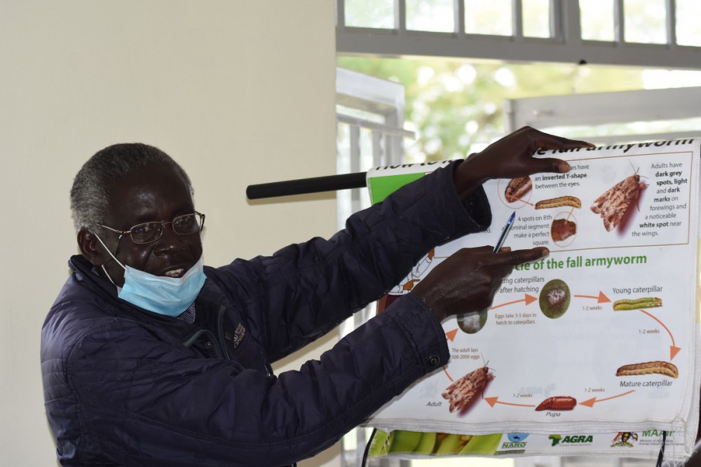 YekoJetu เป็นเกษตรกรอีกคนหนึ่งจากอำเภอ Kapchorwa ทางตะวันออกของยูกันดาได้ให้ข้อสังเกตในช่วงของการฝึกอบรมเกษตรกรเกี่ยวกับการจัดการและการควบคุมหนอนกระทู้ลายจุดข้าวโพด ซึ่งจัดโดยศูนย์ข้อมูลชีววิทยาศาสตร์ยูกันดา (Uganda Biosciences Information Center – UBIC) เมื่อวันที่ 14-21 กันยายน 2563 ว่า คำพูดของพวกเขาสะท้อนให้เห็นถึงความรู้สึกทั่วไปของเกษตรกรใน 8 อำเภอที่มีการฝึกอบรม และเรียนรู้ว่า องค์การวิจัยการเกษตรแห่งชาติของยูกันดา(Uganda’s National Agricultural Research Organization)ได้พัฒนาพันธุ์ข้าวโพดที่สามารถต้านทานศัตรูพืชในกลุ่ม lepidopteran ได้อย่างมีประสิทธิภาพรวมทั้งหนอนกระทู้ลายจุดข้าวโพดอย่างไรก็ตามรัฐบาลยังไม่อนุญาตให้นำข้าวโพดดัดแปลงพันธุกรรมดังกล่าวออกจำหน่ายทั่วไปในประเทศ