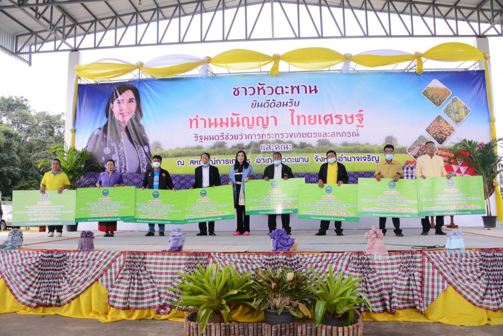 วันที่ 16 ตุลาคม 2563 นางสาวมนัญญา ไทยเศรษฐ์ รัฐมนตรีช่วยว่าการกระทรวงเกษตรและสหกรณ์ พร้อมด้วย นายอัชฌา สุวรรณนิตย์ รองอธิบดีกรมส่งเสริมสหกรณ์ และคณะ ลงพื้นที่ติดตามนโยบายด้านการพัฒนาส่งเสริมสหกรณ์ และเยี่ยมชมการดำเนินงานของสหกรณ์การเกษตรหัวตะพาน จำกัด อำเภอหัวตะพาน จังหวัดอำนาจเจริญ พร้อมรับฟังปัญหา และความต้องการด้านต่างๆ ของผู้นำสหกรณ์และสมาชิกสหกรณ์ จำนวน 500 คน