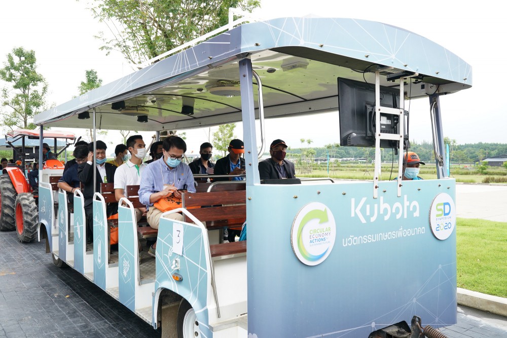 ด้าน นายสมศักดิ์ มาอุทธรณ์ ที่ปรึกษา สำนักงานกรรมการผู้จัดการใหญ่ บริษัทสยามคูโบต้าคอร์ปอเรชั่น จำกัด กล่าวเพิ่มเติมว่า หลักเศรษฐกิจหมุนเวียนเป็นประเด็นที่ประเทศต่าง ๆ ทั่วโลกให้ความสำคัญ ซึ่งผลกระทบที่เห็นได้ชัดเจนจากการใช้ทรัพยากรที่มากเกินไปคือ ปัญหาทางภูมิอากาศที่มีการเปลี่ยนแปลงไปและเกิดผลกระทบรุนแรง ไม่ว่าจะเป็น ปัญหาน้ำท่วม ปัญหาภัยแล้ง และปัญหาฝุ่นละออง จึงเป็นสิ่งที่ต้องมาช่วยกันคิดว่าทำอย่างไรจะให้เกิดการพัฒนาอย่างยั่งยืน เป็นประโยชน์ทั้งด้านเศรษฐกิจ สังคม และสิ่งแวดล้อม โดยเฉพาะภาคเกษตรที่จะช่วยสร้างความมั่นคงด้านอาหารให้กับประชากรของโลก ทั้งนี้ สยามคูโบต้า ได้น้อมนำหลักปรัชญาของเศรษฐกิจพอเพียงและเกษตรทฤษฎีใหม่มาใช้ในการพัฒนาพื้นที่ภายในคูโบต้าฟาร์ม มีความตั้งใจที่จะพัฒนาให้เป็นฟาร์มสร้างประสบการณ์เกษตรสมัยใหม่ของคูโบต้าที่รวบรวมนวัตกรรมเทคโนโลยีการเกษตรและองค์ความรู้เกษตรครบวงจร