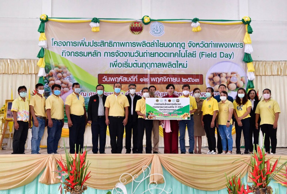 ในโอกาสนี้นางสาวมนัญญา ได้เป็นประธานเปิดงานวันถ่ายทอดเทคโนโลยี (Field Day) เพื่อเริ่มต้นฤดูกาลผลิตใหม่ ภายใต้ “โครงการเพิ่มประสิทธิภาพการผลิตลำไยนอกฤดูจังหวัดกำแพงเพชร” ซึ่งงานดังกล่าวจะมีการถ่ายทอดความรู้การผลิตลำไยคุณภาพตามหลักวิชาการ และมีระบบการปฏิบัติทางการเกษตรดีที่เหมาะสม (GAP) รวมทั้งนวัตกรรมใหม่ๆ แก่เกษตรกร เพื่อสร้างโอกาสและพัฒนาองค์ความรู้ให้เกษตรกรนำไปปฏิบัติ สามารถปรับปรุงคุณภาพผลผลิตให้ดีขึ้น และเพิ่มรายได้อย่างยั่งยืนต่อไป