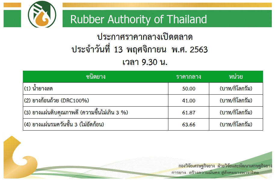 ราคากลางยางพาราเปิดตลาดวันนี้ (13 พ.ย.63) น้ำยางสดขึ้นอีก 2 บาท พฤศจิกายน 12, 2020พฤศจิกายน 12, 2020ดลมนัส กาเจราคายางพารา, สถานีข่าววันนี้ราคากลางยางพารา, ราคายางพาราวันนี้, วันนี้น้ำยางสดขึ้นอีก 2 บาท Exif_JPEG_PICTURE ที่มา : การยางแห่งประเทศไทย