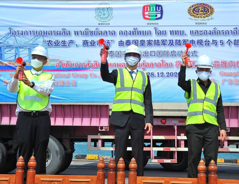 รมว.เกษตรฯร่วมเป็นสักขีพยาน และกดแตรสัญญาณการเริ่มส่งสินค้าเกษตรไทยไปประเทศจีนภายใต้โครงการเกษตรผลิตพาณิชย์ตลาดล๊อตแรกมะพร้าวอ่อน 100 ตัน คาดทันฉลองเทศกาลตรุษจีน พร้อมผลักดันการส่งสินค้าไทยไปตลาดโลก เพื่อช่วยฟื้นเศรษฐกิจในภาพรวมของประเทศ คาดปี 2564 จีนจะมีความต้องการสินค้าเกษตรไทยเป็นจำนวนมาก จับตา มะพร้าวน้ำหอม ลำไย สับปะรดภูแล และทุเรียนหมอนทองมาแรง