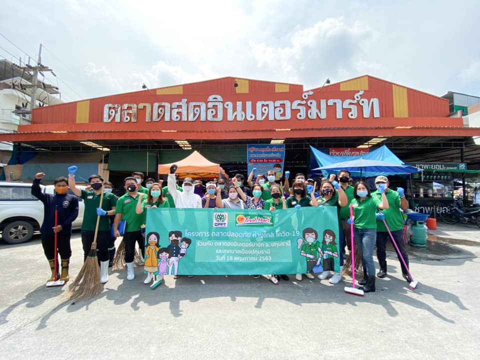 นอกจากนี้ ซีพี เฟรชมาร์ท ยังร่วมมือกับเทศบาลเมืองปทุมธานี จัดกิจกรรม Big Cleaning Day “ตลาดปลอดภัย ห่างไกลโควิด-19” ทำความสะอาดตลาดอินเตอร์มาร์ท และฉีดพ่นฆ่าเชื้อ พร้อมทั้งมอบผลิตภัณฑ์อาหารปรุงสุกและน้ำดื่ม CP เพื่อให้กำลังใจเจ้าหน้าที่และพ่อค้าแม่ค้าในตลาดด้วย