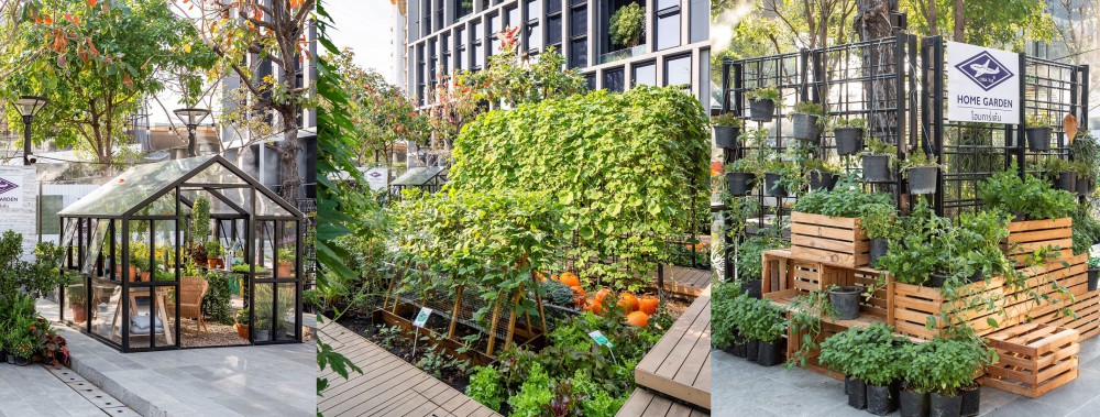 โซน Greenhouse หรือเรือนกระจกเพาะเมล็ดพันธุ์ขนาดย่อมที่ตกแต่งให้เป็นมุมที่สามารถทำงานในสวนได้, โซนกระบะและค้าง ที่จะช่วยประหยัดพื้นที่เพราะสามารถปลูกผักที่ขึ้นค้างร่วมกับการปลูกผักลงดินในแปลงเดียวกันได้, โซนซุ้มโค้งทางเดิน ที่นอกจากใช้ตกแต่งสวนแล้วยังใช้ปลูกผักชนิดเลื้อยให้คลุมทั่วทั้งซุ้มทางเดินได้, โซนทาวเวอร์ไม้เลื้อย ที่มีการผสมผสานกับไม้แขวน โดยการใช้โครงสร้างเดียวปลูกผักทั้งในกระถางแขวนและผักเลื้อยได้, และสุดท้ายคือโซนนั่งเล่นในสวน ที่จะถูกใจคนรักสวนอย่างแน่นอน เพราะสามารถนำไอเดียไปตกแต่งได้ตามความเหมาะสมของขนาดพื้นที่สวนของตนเอง