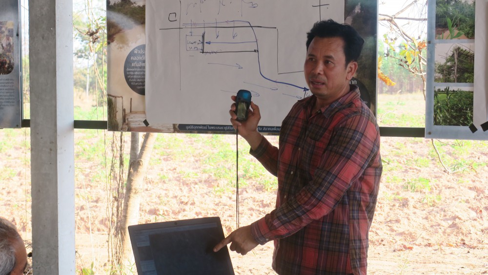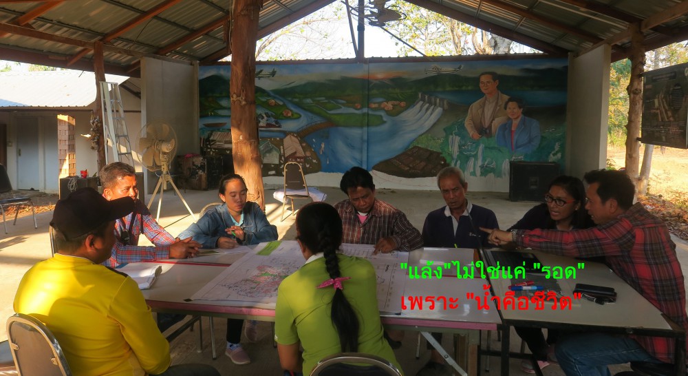 “ผมมีโอกาสได้เจอกับ ดร.รอยล จิตรดอน ที่ปรึกษา สถาบันสารสนเทศน้ำและการเกษตร (องค์การมหาชน) หรือ สสน. อาจารย์ตั้งคำถามที่ทำให้เกิดการเรียนรู้ เพราะเมื่อก่อนชาวบ้านเป็นนักร้อง เรียกร้องตรงนั้นตรงนี้ คัดค้านโครงการนั้นโครงการนี้ อาจารย์จึงทิ้งคำถามไว้ว่า หากคิดว่าสิ่งที่มีอยู่ไม่ดีพอ แล้วเราจะมีวิธีแก้ไขอย่างไร จึงทำให้เรากลับมาคิดภายใต้โจทย์ใหญ่ของชุมชน ว่าเราจะหาทางเก็บน้ำ 2 ปีให้ข้ามแล้ง 4 ปีได้อย่างไร”
