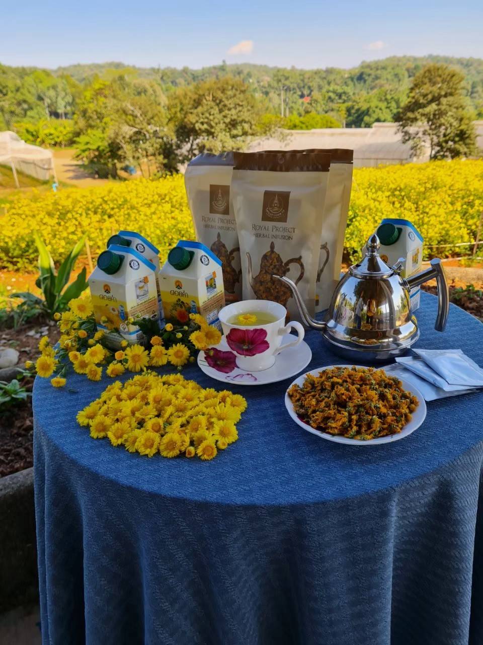 ทั้งนี้เพื่อศึกษาพัฒนาปรับปรุงเครื่องอบแห้งให้ได้มาตรฐานให้กับโครงการหลวงสะโง๊ะ อ.เชียงแสน จ.เชียงราย ซึ่งได้ผลตอบรับเป็นอย่างดี จากนั้น เมื่อปี 2562 ทางทีมวิจัยได้รับทุนอีกครั้งเพื่อพัฒนาเพิ่มเติมภายใต้ 1).โครงการการพัฒนากระบวนการแปรรูปดอกคาร์โมมายล์และดอกเบญจมาศป่า(เก๊กฮวย)อบแห้ง และ2).โครงการการพัฒนากระบวนการแปรรูปดอกคาโมมายล์ ดอกเบญจมาศป่า(เก๊กฮวย)และพืชสมุนไพรอบแห้ง ซึ่งจากเดิมได้ผลผลิตอบแห้ง 600 กิโลกรัม/ฤดูกาลเก็บเกี่ยว เพิ่มขึ้นเป็น 10.5 ตันแห้ง / ฤดูกาลเก็บเกี่ยว ทำให้ได้ผลผลิตที่มีคุณภาพมากยิ่งขึ้น สามารถเพิ่มราคารับซื้อดอกเก๊กฮวย จาก 20 บาทเป็น 47 และคาโมมายล์ จาก 50 บาท เป็น 70 บาท สร้างรายได้อย่างยั่งยืนให้กับเกษตรกรในโครงกการได้มากยิ่งขึ้น