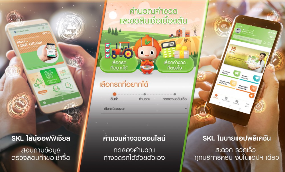 1. เอสเคแอลโมบายแอปพลิเคชัน (SKL Mobile Application) สามารถตรวจสอบรายละเอียดสัญญา ค่างวด ยอดคงเหลือ ประวัติการชำระ แจ้งเตือนความเคลื่อนไหว ชำระเงินออนไลน์ ไปจนถึงติดตามข่าวสารและกิจกรรมพิเศษสำหรับลูกค้า