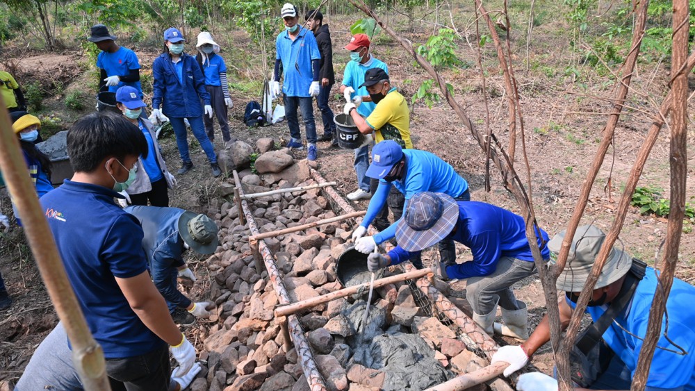 กิจกรรมเริ่มต้นของปีนี้ซึ่งเข้าสู่ระยะที่สอง จิตอาสาซีพีเอฟ ร่วมกับเจ้าหน้าที่กรมป่าไม้และชุมชน ลงพื้นที่ซ่อมแซมฝายชะลอน้ำ 6 ฝาย ที่ทำไว้ตั้งแต่ ปี 2561 เพื่อเพิ่มประสิทธิภาพการทำหน้าที่ของฝายในการชะลอการไหลของน้ำ ดักตะกอน กิ่งไม้ เศษไม้ ดิน โคลน เพิ่มความชุ่มชื้นในบริเวณฝายและพื้นที่เหนือฝาย เพิ่มปริมาณน้ำใต้ดิน ทำให้ผืนดินมีความชุ่มชื้น ซึ่งในระยะต่อไป ต้นไม้ในพื้นที่โครงการฯที่เติบโตขึ้น จะสามารถกักเก็บคาร์บอนไดออกไซด์ ช่วยบรรเทาผลกระทบจากการเปลี่ยนแปลงสภาพภูมิอากาศ