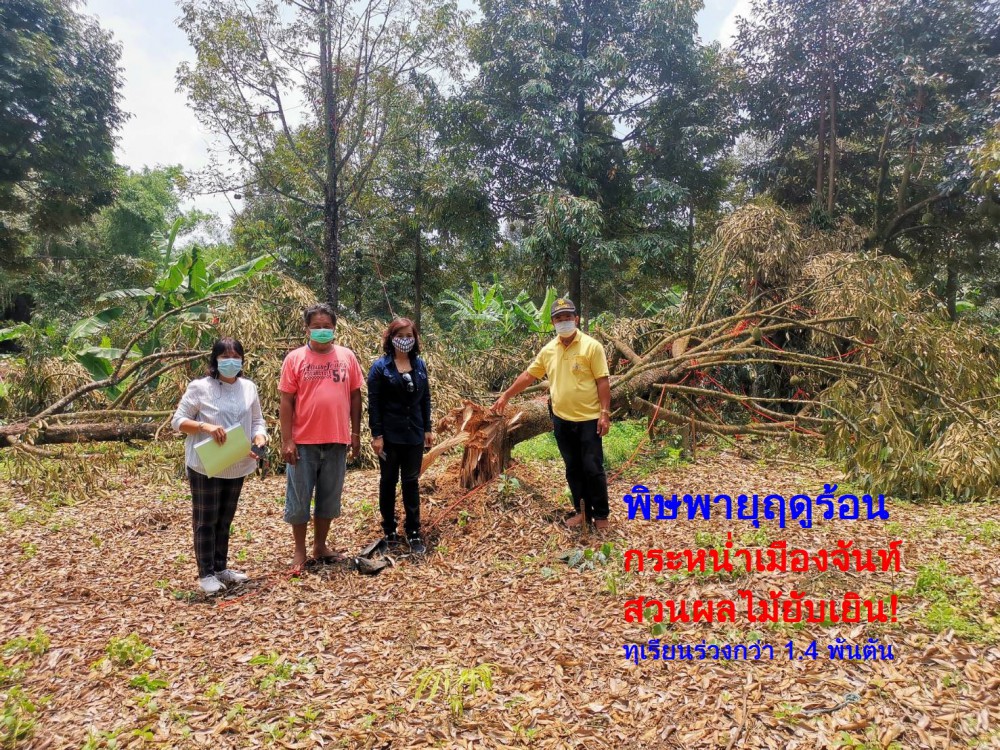 พิษพายุฤดูร้อน ทำให้เกิดพายุฝนฟ้าคะนอง และมีลมกระโชกแรงกระหน่ำสวนผลไม้ในพื้นที่ 8 อำเภอกว่า 100 หมู่บ้านในจังหวัดจันทบุรี เบื้องต้นพบความเสียหายแล้วกว่า 260 ไร่ เรียนผลร่วงอีก 1,454 ตัน กรมส่งเริมการเกษตรสั่งให้เกษตรจังหวัดสำรวจความเสียหายและหาทางช่วยเหลือด่วน