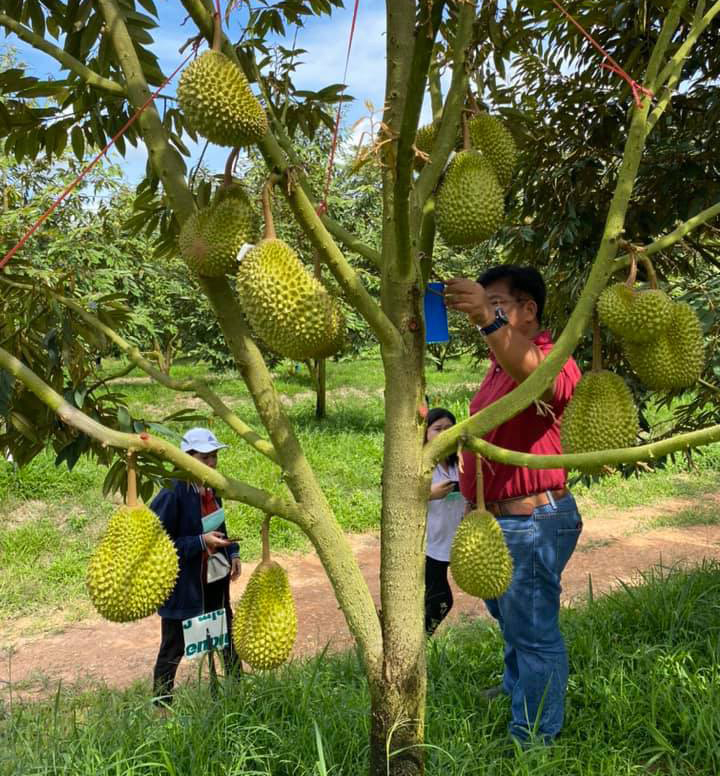 นางอัญชนา ตราโช รองเลขาธิการสำนักงานเศรษฐกิจการเกษตร (สศก.) กระทรวงเกษตรและสหกรณ์ เปิดเผยถึงการลงพื้นที่ติดตามสถานการณ์สินค้าทุเรียนภาคตะวันออก ในพื้นที่จังหวัดตราด จันทบุรี และระยอง เมื่อปลายเดือนมีนาคม ถึง ต้นเดือนเมษายนที่ผ่านมาว่า ปี 2564 ทุเรียนให้ผลผลิต 575,542 ตัน เพิ่มขึ้นจากปีที่ผ่านมาเล็กน้อยร้อยละ 5 ขณะนี้ผลผลิตเริ่มออกสู่ตลาดแล้วเป็นทุเรียนพันธุ์เบา เช่น พันธุ์กระดุม พวงมณี ซึ่งเป็นพันธุ์ที่อายุการเก็บเกี่ยวสั้น (90 – 95 วัน) และจะให้ผลผลิตออกสู่ตลาดก่อนพันธุ์หมอนทองที่มีอายุเก็บเกี่ยวยาวกว่า (110 – 120 วัน)
