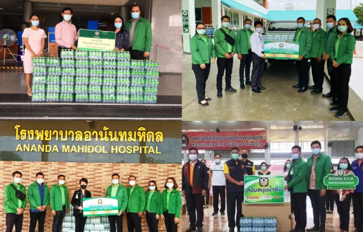 ธนาคารเพื่อการเกษตรและสหกรณ์การเกษตร (ธ.ก.ส.) ในพื้นที่ทั่วประเทศ ร่วมเป็นส่วนหนึ่ง ในการส่งมอบก าลังใจให้บุคลากรทางการแพทย์ในการปฏิบัติหน้าที่ในช่วงการแพร่ระบาดของเชื้อไวรัส โควิด-19 โดยมอบน้ าดื่มและอุปกรณ์จำเป็นต่าง ๆ ให้กับโรงพยาบาลและโรงพยาบาลสนาม เพื่อใช้ในการรองรับผู้ป่วยที่ได้รับเชื้อไวรัสโควิด-19 และกิจกรรมสาธารณประโยชน์ต่าง ๆ โดยมีผู้บริหารและพนักงานธ.ก.ส. สาขา ในจังหวัดต่าง ๆ เป็นผู้แทนธนาคารในการส่งมอบ