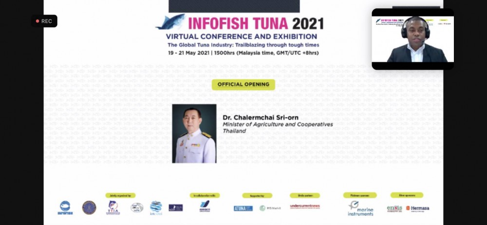 วันที่ 19 พฤษภาคม 2564 นายเฉลิมชัย ศรีอ่อน รัฐมนตรีว่าการกระทรวงเกษตรและสหกรณ์ ร่วมกล่าวเปิดการประชุมและจัดแสดงสินค้า “ทูน่าโลก ครั้งที่ 16” (The Sixteenth INFOFISH World Tuna Trade Conference and Exhibition – Virtual) หรือ “INFOFISH TUNA 2021” ที่ INFOFISH ร่วมกับประเทศไทยเป็นเจ้าภาพจัดขึ้นระหว่างวันที่ 19 – 21 พฤษภาคม 2564 ผ่านระบบออนไลน์เป็นครั้งแรก ทาง www.tuna2021.vfairs.com ที่กระทรวงเกษตรและสหกรณ์