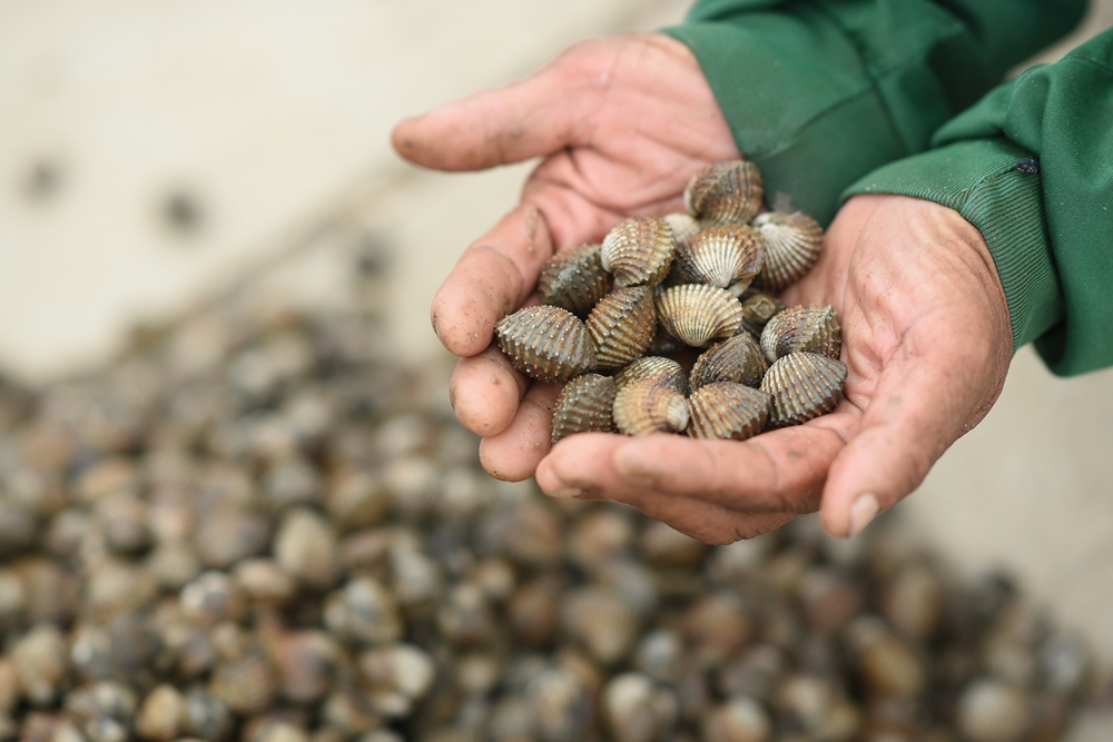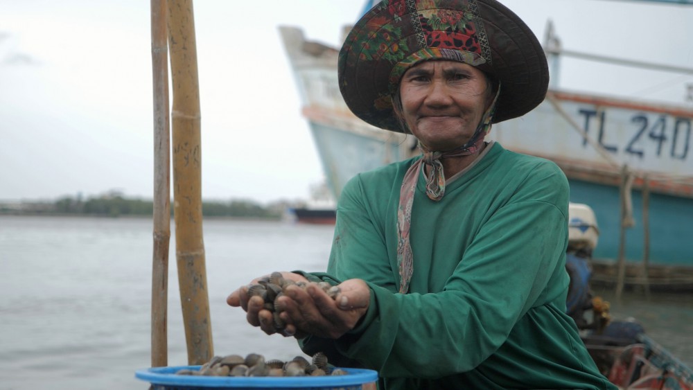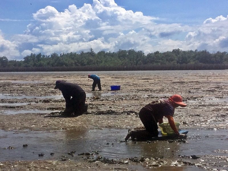“คุณป้าเตือนใจ ฟักอยู่” หรือคุณป้าหน่อย” อายุ 56 ปี และ “คุณลุง วันเพ็ญ มนัส” อายุ 69 ปี สองสามีภรรยาซึ่งอาศัยอยู่ในพื้นที่หมู่ 5 ตำบลบางหญ้าแพรก จ.สมุทรสาคร อาชีพงมหอยขายมากว่า 30 ปี คุณลุงวันเพ็ญ เล่าว่า ช่วง 4-5 ปีมานี้ สภาพป่าชายเลนในพื้นที่อุดมสมบูรณ์กว่าเมื่อก่อนที่ไม่มีป่า ไม่มีต้นไม้ สัตว์น้ำต่างๆก็หายไปด้วย แต่เมื่อป่ากลับคืนมา ก็กลายเป็นแหล่งอาศัยของสัตว์น้ำ คนในพื้นที่ที่มีอาชีพประมง หากุ้ง หอย ปู ปลา ได้ปริมาณเพิ่มขึ้น โดยที่ไม่ต้องออกเรือไปไกลๆเหมือนเมื่อก่อน ลุงมีอาชีพงมหอยก็หารายได้ได้เพิ่มขึ้น งมหอยได้ต่อวันประมาณ 7-10 กิโลกรัม ถ้าเป็นหอยแครงขนาดใหญ่ ขายได้กิโลกรัมละ 140 บาท ถ้าเป็นตัวเล็ก จะขายได้ประมาณกิโลกรัมละ 80 บาท ทำให้มีรายได้วันละ 1 พันกว่าบาท รายได้ดีกว่าเมื่อก่อนที่ราคาหอยไม่ดีและงมได้ไม่มาก