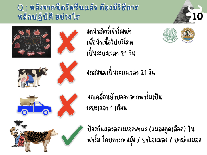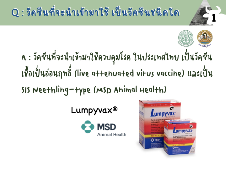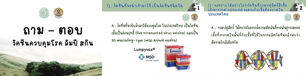 อย่างไรก็ตาม เพื่อให้เกษตรกรได้มีความเข้าใจเกี่ยวกับโรคลัมปี สกิน ว่าเป็นอย่างไร จะรักษาอย่างไร จะฉีดวัคซีนอย่างไร เมื่อไร ทางสำนักงานควบคุมป้องกันและบำบัดโรคสัตว์ ร่วมกับกลุ่มพัฒนาวิชาการปศุสัตว์ และหน่วยพัฒนาสุขภาพและผลผลิตสัตว์ กรมปศุตว์ จัดทำเอกสารถาม-ตอบขัอสงสัยต่างๆขึ้นมา