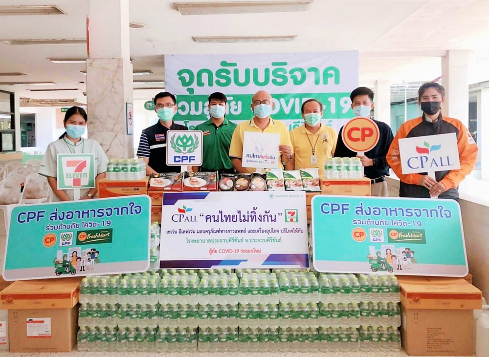 นายอุดมศักดิ์ แสงวณิช รองผู้อำนวยการ ภารกิจด้านอำนวยการ โรงพยาบาลประจวบคีรีขันธ์ รับมอบผลิตภัณฑ์อาหารพร้อมทานคุณภาพปลอดภัยจากซีพีเอฟ เพื่อเติมพลังกายและเสริมกำลังใจทีมนักรบชุดขาว ลดภาระการจัดเตรียมอาหาร เพื่อทุ่มเทเวลาในการดูแลรักษาผู้ป่วยได้อย่างเต็มที่ นายอุดมศักดิ์ กล่าวว่า ในท่ามกลางสถานการณ์โควิด-19 นอกจากกระทรวงสาธารณสุขที่สนับสนุนเวชภัณฑ์ต่างๆ แล้ว ภาคเอกชนก็เป็นส่วนหนึ่งที่เป็นขวัญกำลังใจให้กับบุคลากรทางการแพทย์ อย่างซีพีเอฟ ที่ได้นำอาหารสำเร็จรูปพร้อมทานที่ปลอดภัย สะอาด และอร่อย มามอบให้ รวมถึงเซเว่น อีเลฟเว่น ที่ส่งมอบครุภัณฑ์ทางการแพทย์ให้กับทีมแพทย์ด้วย พร้อมฝากประชาชนดูแลสุขภาพตัวเองให้ดี สวมหน้ากากอนามัย ล้างมือบ่อยๆ รวมถึงเว้นระยะห่างทางสังคม