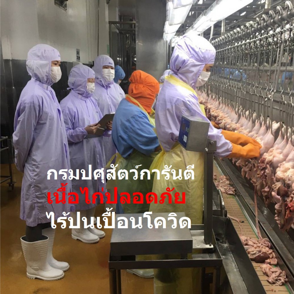 อธิบดีกรมปศุสัตว์ ออกมาการันตีเนื้อไก่ปลอดภัย หลังจากตรวจพบพนักงานในโรงงานชำแหละไก่จำนวนหนึ่งติดเชื้อไวรัสโควิด-19 ล่าสุดได้ทำการงานปิดสถานประกอบการและทำความสะอาดแล้ว ยืนยันกรมปศุสัตว์ได้มีมาตรการป้องกันอย่างเข้มงวด ขณะที่ผลสุมตรวจผลิตภัณฑ์กว่า 2,250 ตัวอย่างไร้ปัญหาการปนเปื้อนเชื้อไวรัสร้าย แนะผู้บริโภคให้เลือกเนื้อสัตว์ ที่สัญลักษณ์ปศุสัตว์ OK และนำเนื้อไก่ไปปรุงให้สุกก่อนรับประทาน
