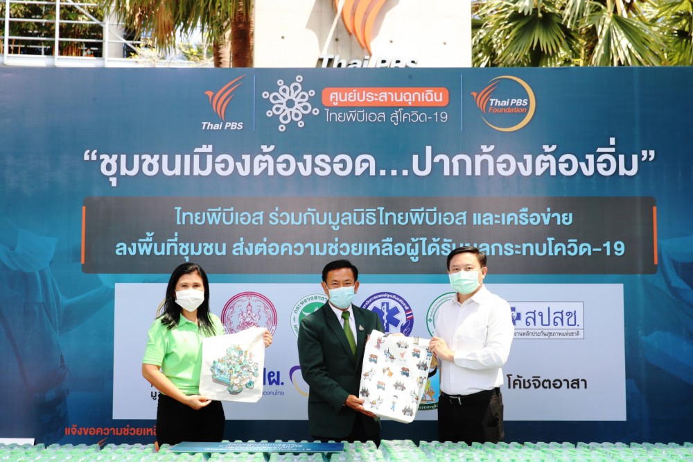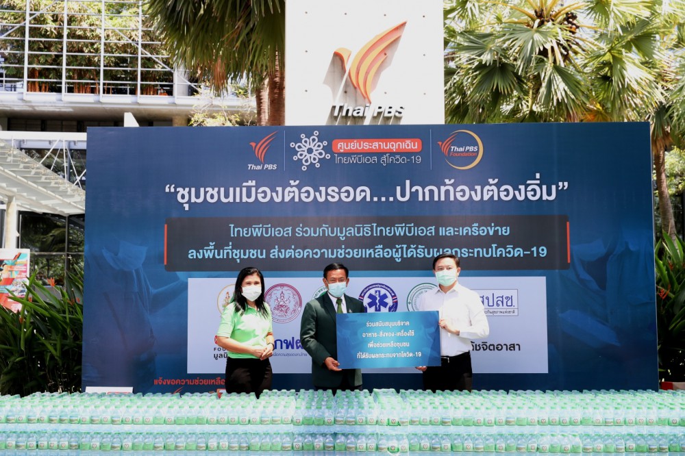 นายสมเกียรติ กิมาวหา รองผู้จัดการธนาคารเพื่อการเกษตรและสหกรณ์การเกษตร (ธ.ก.ส.) พร้อมด้วยผู้บริหารและพนักงาน เป็นตัวแทนธนาคารร่วมมอบเงินสมทบทุนในโครงการ “ชุมชนเมืองต้องรอด…ปากท้องต้องอิ่ม”โดยมูลนิธิไทยพีบีเอส จำนวน 30,000 บาท รวมทั้งมอบน้ำดื่มตรา ธ.ก.ส. จำนวน 2,400 ขวด เพื่อส่งต่อความช่วยเหลือให้ผู้ได้รับผลกระทบจากสถานการณ์การแพร่ระบาดของเชื้อไวรัสโควิด-19