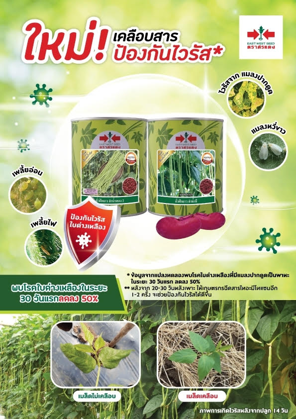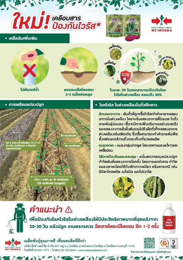 โรคไวรัสใบด่างเหลืองในถั่ว ถือเป็นปัญหาใหญ่ของเกษตรกรผู้ปลูกถั่วฝักยาวในไทยซึ่งในขณะนี้ เพราะได้สร้างความเสียหายให้กับแปลงถั่วฝักยาวของเกษตรกรเป็นจำนวนมาก ดังนั้นบริษัท อีสท์ เวสท์ ซีด จำกัด (เมล็ดพันธุ์ตราศรแดง) บริษัทเมล็ดพันธุ์อันดับ 1 ในไทยไม่ได้นิ่งนอนใจกับปัญหานี้